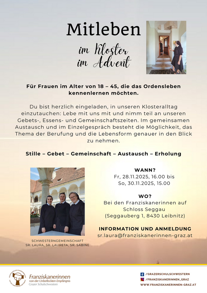 Ort: Franziskanerinnen auf Schloss Seggau (Seggauberg 1, 8430 Leibnitz)