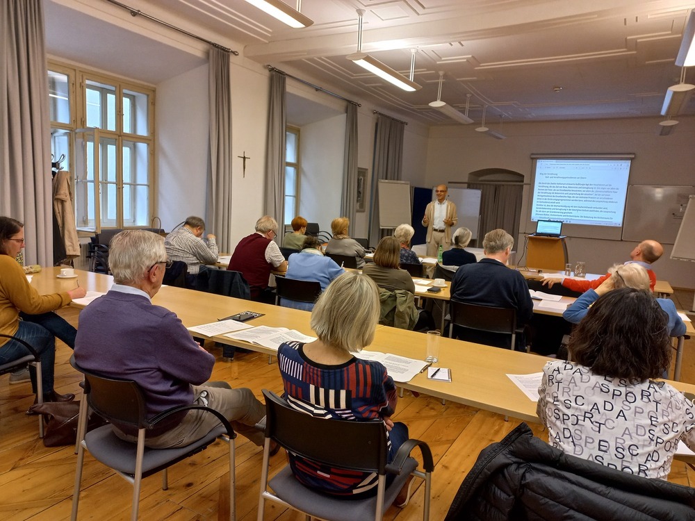 Die beiden Referierenden, PPH Augustinum-Professorin Mevlida Mešanović und Peter Anna Zeillinger von der Universität Wien, tauchten mit den Kursteilnehmenden in den historischen Kontext der Entstehung der Botschaft des Qur'ans ein. Im Mittelpunkt standen dabei die Verbindungslinien zwischen Bibel und Qur'an, die jüdischen und christlichen Spuren in der islamischen Offenbarung sowie die theologischen und gesellschaftlichen Rahmenbedingungen zur Zeit der Entstehung des Qur'ans. Die Teilnehmenden widmeten sich dem altarabischen und spätantiken Kontext und diskutierten die mekkanische wie auch die medinensische Phase der Botschaft des Qur'ans.