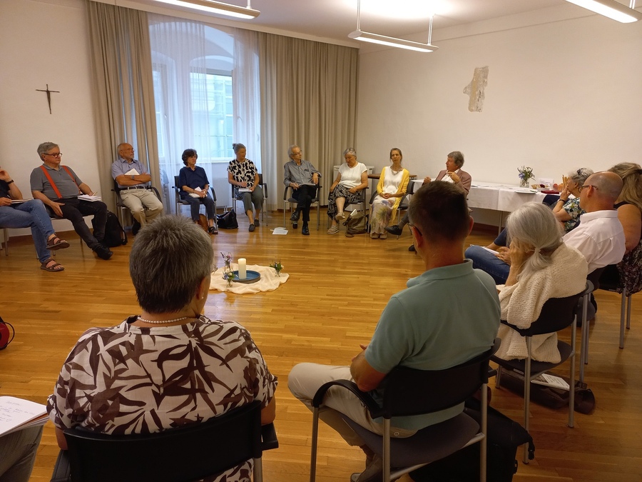 Wie schon im Jahr 1996, als P. S. Painadath das Seminar ,Gott wird im Menschen fruchtbar‘ zu Texten von Meister Eckhart aus östlicher Sicht im Bildungshaus Mariatrost durchführte, schenkten die intensiven Tage im geschützten Raum und durch das Eingebundensein in eine wertschätzende Gemeinschaft den Teilnehmer:innen auch dieses Mal Orientierung und Zuversicht in einer krisenbelasteten Zeit. (Ernst Zerche, Ingrid Zechner, Kathrin Karloff)