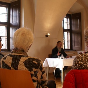 Im zweiten Teil durften wir den Begegnungen lauschen, die der Einsiedler Raimund in seiner Klause in Saalfelden von 2004 – 2015 erlebte. Neben seinen biografischen Erzählungen konnten wir auch hören, welch weiser Mann Bruder Raimund ist, indem er wiederholt Weisheits-Sprüche und kurze, einprägsame Sätze aus dem Leben einiger Heiliger bzw. einer weisen Indianerin uns als Lebens- und Glaubenshilfe in sehr verständlicher Sprache anbot.