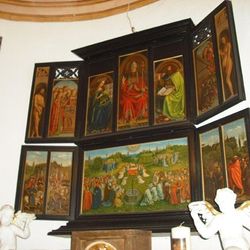 Die im 12. Jahrhundert erbaute Burg Rabenstein ist wohl eine der imposantesten Burganlagen des ganzen Murtales. Die Altburg, aus der heute ein moderner Stahl-Glas-Bau von Burgherrn DI Werner Hochegger ragt, brannte ab und wurde nicht wieder aufgebaut. Die heutige Burg wurde im 14. Jahrhundert errichtet und befand sich in landesfürstlichem Besitz. Aus dieser Zeit stammt vermutlich auch die über dem Südtor liegende Burgkapelle. Sie ist somit die älteste Privatkapelle in unserer Pfarrgemeinde. Urkundliche Erwähnungen dieser Kapelle sind aus den Jahren 1519 bis 1888 mit der Bezeichnung als „Heilig-Kreuz-Kapelle“ bzw. als Kapelle zur „Heiligen Kreuzabnahme“ vorhanden. Ein großes Gemälde in der Kapelle zeigt dieses Motiv der Kreuzabnahme. Leonhard von Harrach, Verweser in Steiermark und Hauptmann zu Pettau, stiftete am 18. Dezember 1519 eine tägliche Messe, die am Donnerstag in der St. Georgs-Pfarrkirche, an Sonn- und Feiertagen sowie an Werktagen, an denen der Stifter nicht an der Zelebration in Adriach teilnehmen konnte, in der Burg Rabenstein abzuhalten war. Er stattete diese Stiftung großzügig mit einer Hofstatt im Forstgraben als Kaplanswohnung und 28 Pfund Pfennigen Herrengült aus. Nach der Visitation am 25. Oktober 1618 durch den Seckauer Fürstbischof ging der Besitz der Kapelle von etlichen Bauern an die Herrn von Windischgräz über. Anlässlich einer Visitation vom 12. Jänner 1756 wurde die Burgkapelle zum „Sacellum publicum“, d.h. zu einer öffentlichen Kapelle erklärt, in der wenigstens drei Messen im Jahr gefeiert werden sollten. Im Oktober 1869 beantragte der kunstsinnige k.k. Burghauptmann Ludwig von Montoyer beim fürstbischöflichen Ordinariat in Graz einige bauliche Änderungen, wodurch sie ihr heutiges Aussehen erhielt. Sie ist ca. 19 m² groß, 3,75 m hoch und bietet Platz für maximal 10 Personen. Im Mittelpunkt der Burgkapelle hängt ein beeindruckender Flügelaltar. Es handelt sich dabei um eine originalgetreue Nachbildung des berühmten Genter Altars (Belgien), der 1432 am Höhepunkt der Flämischen Schule von Jan van Eyck geschaffen wurde. Auf dem Altaraufsatz ist die Anbetung des Gotteslammes zu sehen, einem Symbol für Jesus Christus in der Schlussszene der Offenbarung des Johannes, und der Einzug der Auserwählten nach dem Jüngsten Gericht in das Neue Jerusalem. Der beherrschende Mittelteil des Bildes zeigt Gottvater als thronenden Weltenherrscher sowie die heilige Maria und Johannes den Täufer. Auf den Seitenflügeln wird diese Gruppe von musizierenden Engeln sowie von Adam und Eva begleitet. Man sieht den gut erhaltenen Flügelaltar nun immer mit der Festtagsseite, also mit geöffneten Flügeln, die man früher nur zu den großen Festen Ostern, Weihnachten und Allerheiligen zeigte. Auf der Alltagsseite, den geschlossenen Flügeln, gibt es insgesamt 12 Bilder. Sie zeigen unter anderem Johannes den Täufer, Johannes den Evangelisten und Mariä Verkündigung. Der Andachtsraum besitzt einen Steinboden, drei Fenster sorgen für Tageslicht und in der Mitte der Kapelle hängt eine kunstvolle Ampel. Es gibt mehrere Heiligenbilder, schön gearbeitete Holzsessel und einen kleinen Holzaltar mit Altarkreuz. Am 9. März 1888 erhielt der neue Besitzer der Burg, Fritz Reininghaus, vom fürstbischöflichen Ordinariat die Erlaubnis, in der Burgkapelle jährlich wenigstens zehn Messen feiern zu dürfen, besonders an Familiengedächtnistagen. Nach dem Tod von Sigurd Reininghaus 1981 sollen für den Verstorbenen auf Initiative der damals im Schloss Waldstein lebenden Ex-Kaiserin Zita eine oder zwei Messen in der Kapelle gefeiert worden sein. Vor der Übernahme der Burg Rabenstein durch den Grazer Unternehmer DI Werner Hochegger im Jahr 2005 sind aus der Kapelle leider einige sakrale Gegenstände abhanden gekommen. Der jetzige Eigentümer hat jedoch dankenswerterweise dafür gesorgt, dass die Burgkapelle wieder renoviert wird, so dass man sie wieder als Messkapelle nützen könnte. Auf diese Weise ist dafür gesorgt, dass die ca. 700-jährige Geschichte dieser wunderbaren Kapelle eine Fortsetzung finden kann. |