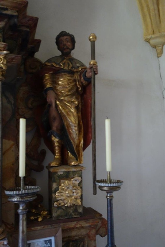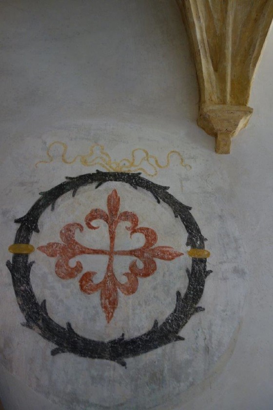 Über dem Schrank befinden sich ein freigelegtes spätgotisches Apostelkreuz und ein Bild von der Verehrung Jesu mit nackter Schulter. An der rechten Wand hängt ein bemerkenswertes Ölgemälde, ebenfalls aus der Spätgotik, mit einer Inschrift über die Begehung der Arche Noah. In der Nische unter dem zur Turmkammer angrenzenden Fenster ist eine Statue des heiligen Antonius und rechts daneben ein Kreuzigungsbild vorhanden.