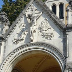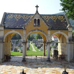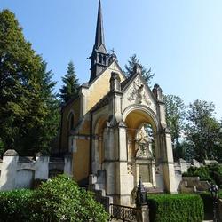Die 1898 fertig gestellte Grabkapelle zählt wohl zu den schönsten Grabmonumenten und befindet sich am Areal der Mayr-Melnhof`schen Familiengruft im östlichen Bereich des Ortsfriedhofs in Adriach. Dieses für die Gruft und den neuen Friedhof der Pfarre Frohnleiten benötigte Grundstück hatte Freiherr Franz Mayr von Melnhof der Gemeinde gestiftet. Auftraggeber der Gruft war Franz III. Freiherr Mayr von Melnhof (1854 – 1893), Guts- und Werksbesitzer, Gründer der heutigen Kartonfabrik in Frohnleiten und Landtagsabgeordneter. Nach seinem frühen Tod 1893 wurde er als Erster der Familie darin beigesetzt. Dieses schöne Zeichen des Glaubens befindet sich am hinteren Ende des mit Zinnen bewehrten, ummauerten Bereichs und ist über flache Freitreppen erreichbar. Die Kapelle besteht im Kern aus einem einfachen Baukörper mit quadratischem Grundriss und Pultdach. Die Mauern sind mit ockerfarbenen Tonfliesen aus den Wienerberger Ziegelwerken verkleidet. Das Dach ist von einem hohen Dachreiter bekrönt, einem Aufbau aus Metall, der mit einer Glocke ausgestattet und mit auffälligen glasierten Ziegeln gedeckt ist. Dem Eingang der Kapelle ist eine niedrigere, steinsichtige Vorhalle vorgesetzt, die sich nach drei Seiten in runden Bögen öffnet. In die Brüstung ihrer Stirnseite ist eine wappenbekrönte Tafel eingelassen, die mit rührenden Worten an den verstorbenen Erbauer erinnert: „Das schönste Los ward ihm auf Erden, Im Giebelfeld der Grabkapelle prangt eine Skulptur des gekreuzigten Christus, flankiert von Engeln. Mit dem spitzen Türmchen und den hohen Giebeln, dem reichen Skulpturenschmuck bis hin zu den monsterhaften Wasserspeiern erinnert das Bauwerk an die Architektur der Gotik. Der Zugang erfolgt durch die Priestergruft, eine aufwändige Säulenhalle mit drei großen Bögen. Dort fanden die in Frohnleiten verstorbenen Servitenpatres und der verdienstvolle Obmann des „Vereins der Freunde der Kirche Adriach“, OSTR Msgr. Johannes Parizek (1915 – 1996), ihre letzte Ruhestätte. Johann Melinz |