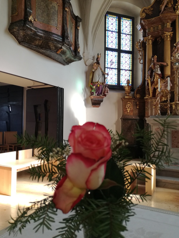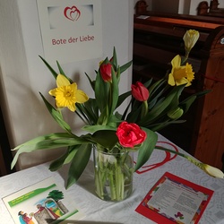 Dazu gab es noch einige Informationen zum heiligen Valentin von Terni, dessen Statue ja auch in unserer Kirche im Altarraum steht. Seine Idee, mit dem Verschenken von Blumen  lieben Menschen eine Freude zu bereiten und Zuneigung auszudrücken, ist heute genauso wertvoll wie damals im 3. Jahrhundert.