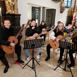 Das Gitarrenensemble der Musikschule Premstätten sorgte am 2. Adventsonntag bei der Wort-Gottes-Feier, die von WGF-Leiter Helmut Kirchengast gefeiert wurde, für eine wunderschöne musikalische Gestaltung.