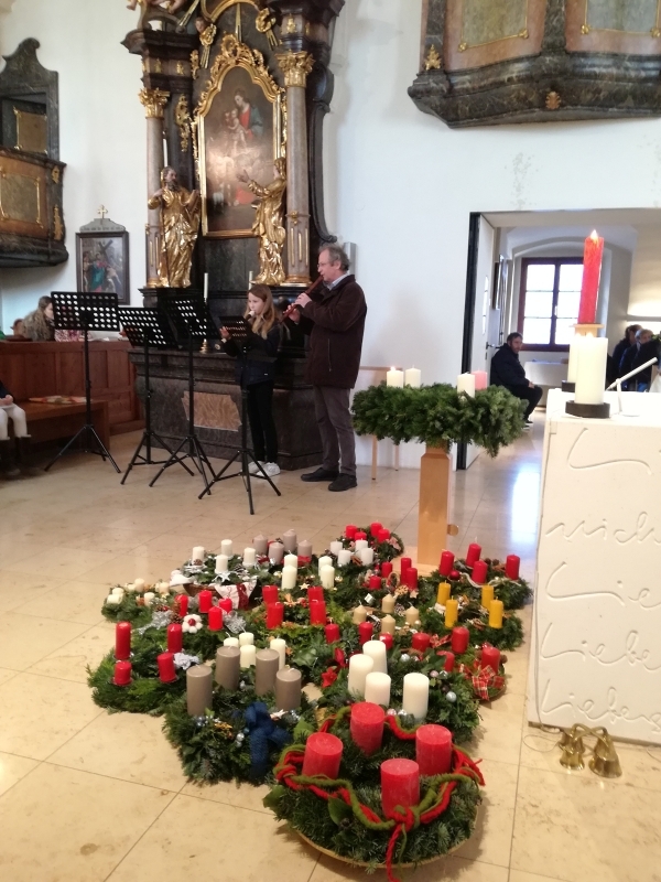 Am 1. Adventsonntag zelebrierte Vikar Gerhard Hatzmann die heilige Messe, segnete zu Beginn die Adventkränze und machte in seiner Adventpredigt Mut, es Gott gleich zu machen und Mensch zu werden. Musikalisch gestalteten die Holzbläserensembles der Musikschule Premstätten den Gottesdienst mit schönen adventlichen Klängen.