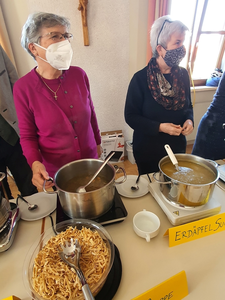 Von Brokkoli-Kartoffelsuppe über Erdäpfel-, Frittaten-, Gemüse- und Käsesuppe bis hin zur Karotten-, Knoblauch-, Kürbis-, Linsen- und Tomatensuppe reichte das Angebot am Suppensonntag unserer Pfarre. Man konnte seine köstliche Suppe im Pfarrsaal oder - bei diesem schönen Wetter - sogar im Freien am Stehtisch genießen. Auch die Suppe im Glas wurde gerne mitgenommen. Danke dem PGR fürs Organisieren und allen Suppenesser:innen für die Spenden, die im Rahmen des Familienfasttages karitativen Zwecken zu Gute kommen.