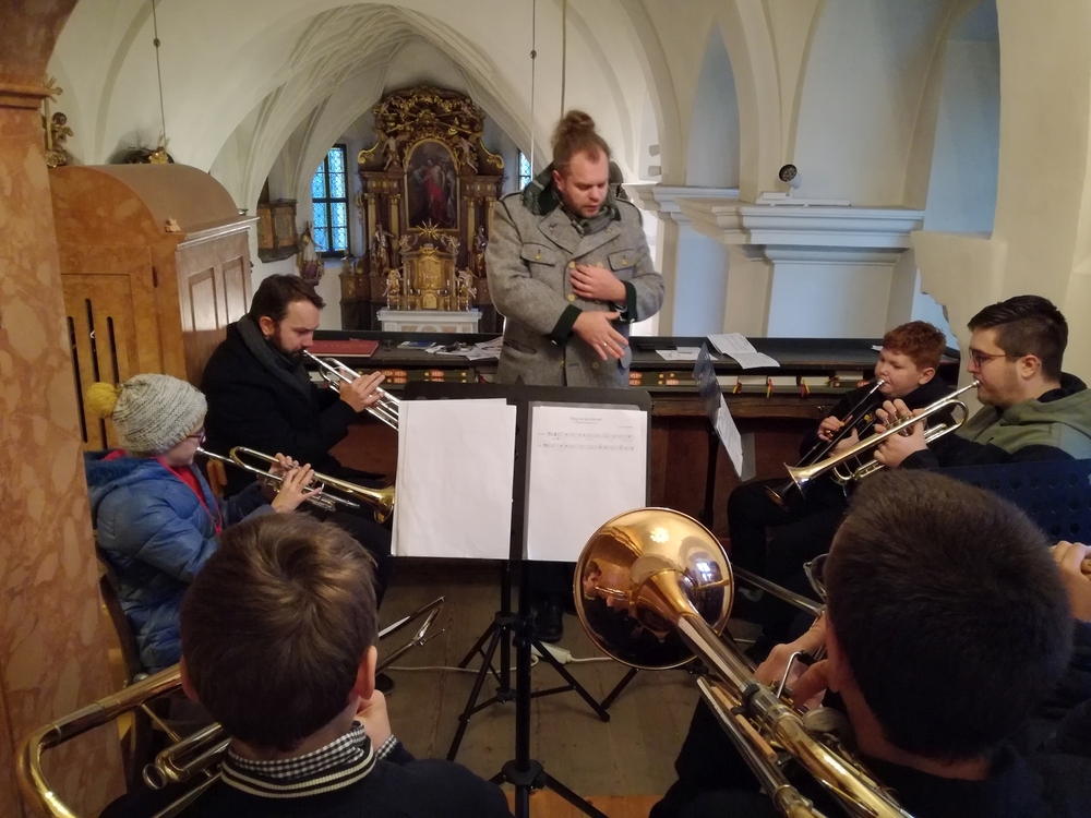 Auf die Christmette, heuer um 21 Uhr, stimmte uns eine Abordnung der MUZ  am Kirchplatz mit weihnachtlichen Weisen musikalisch ein. Herzlichen Dank dafür!